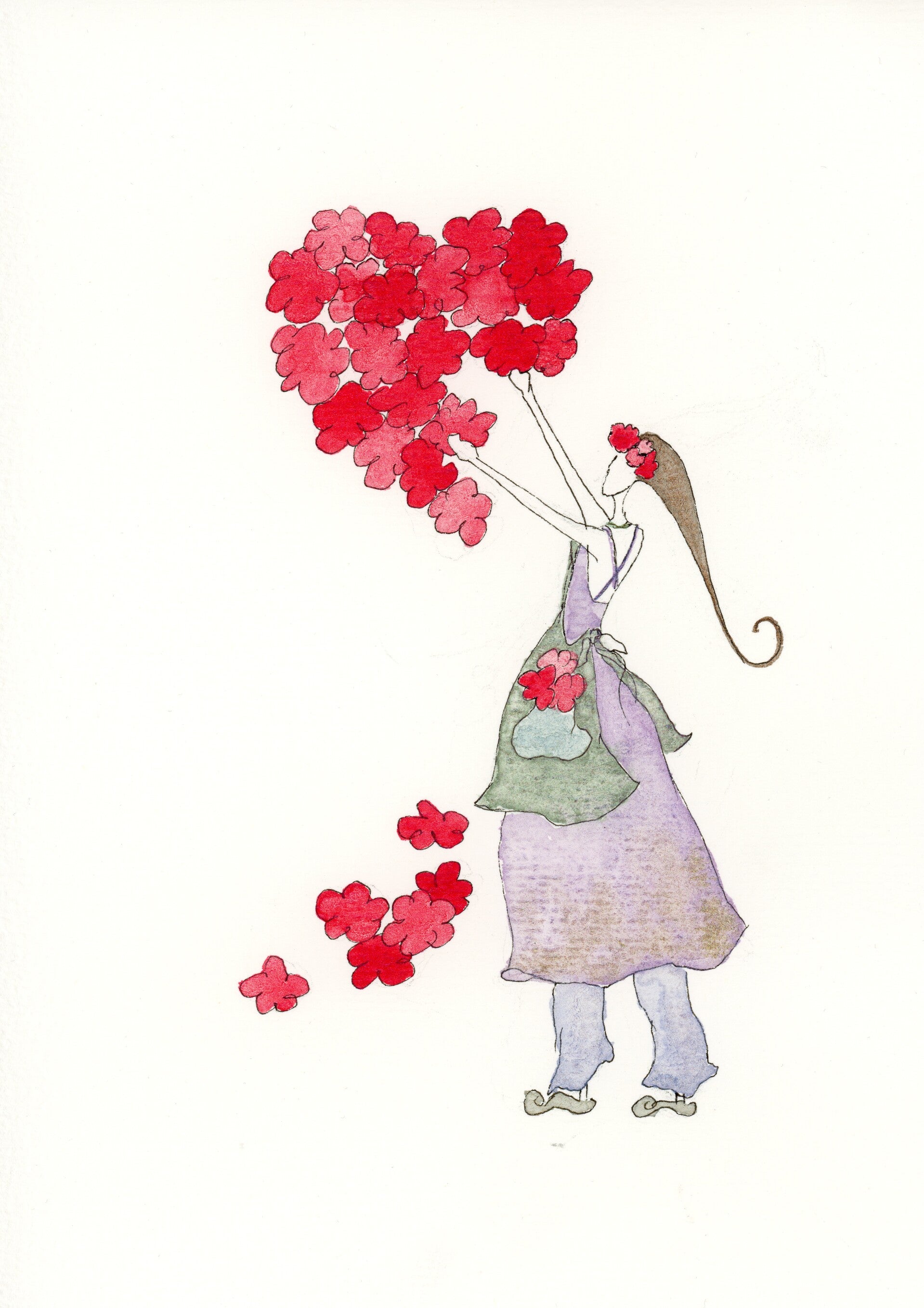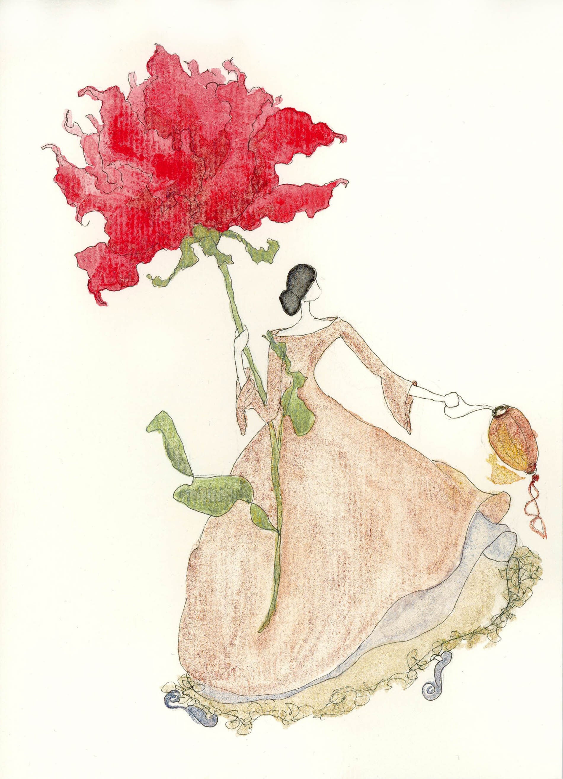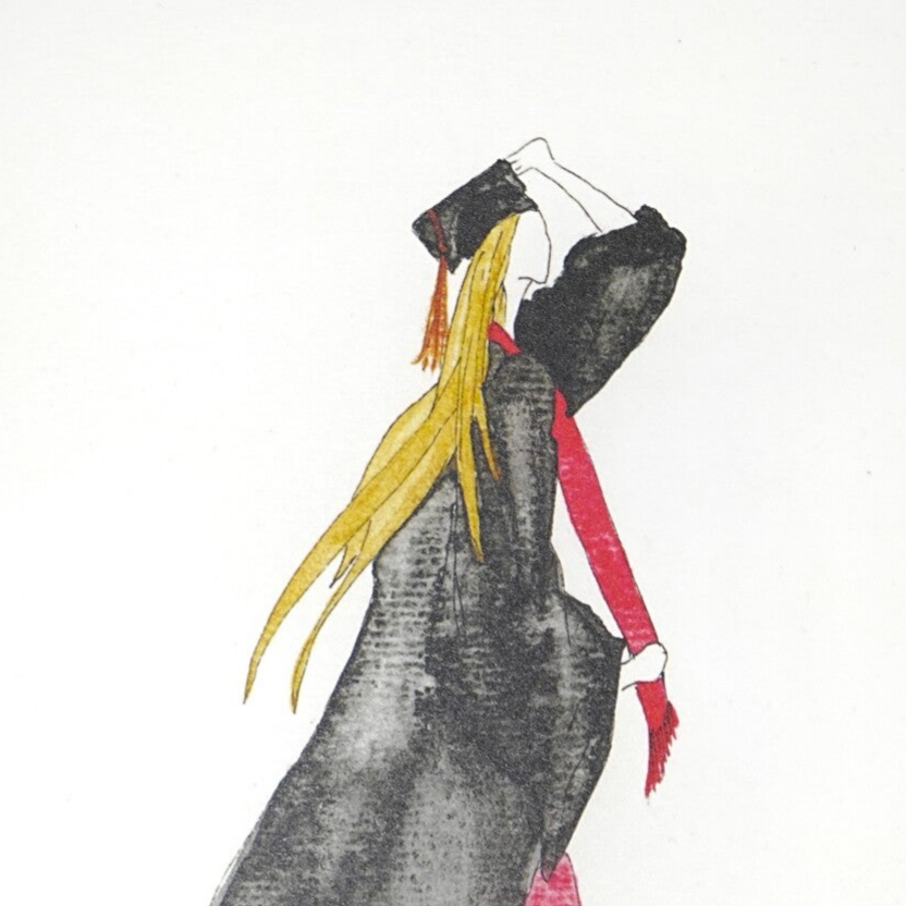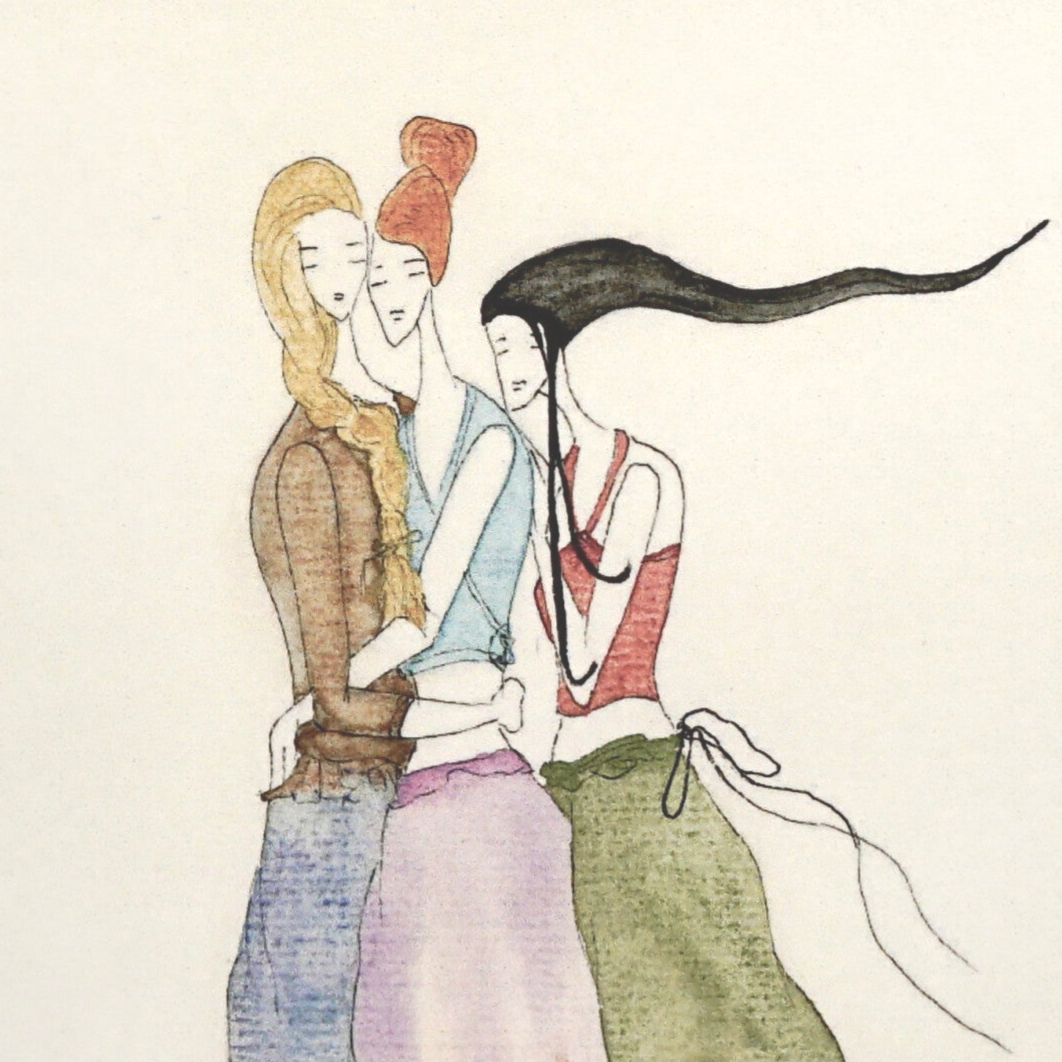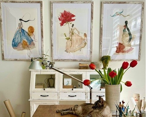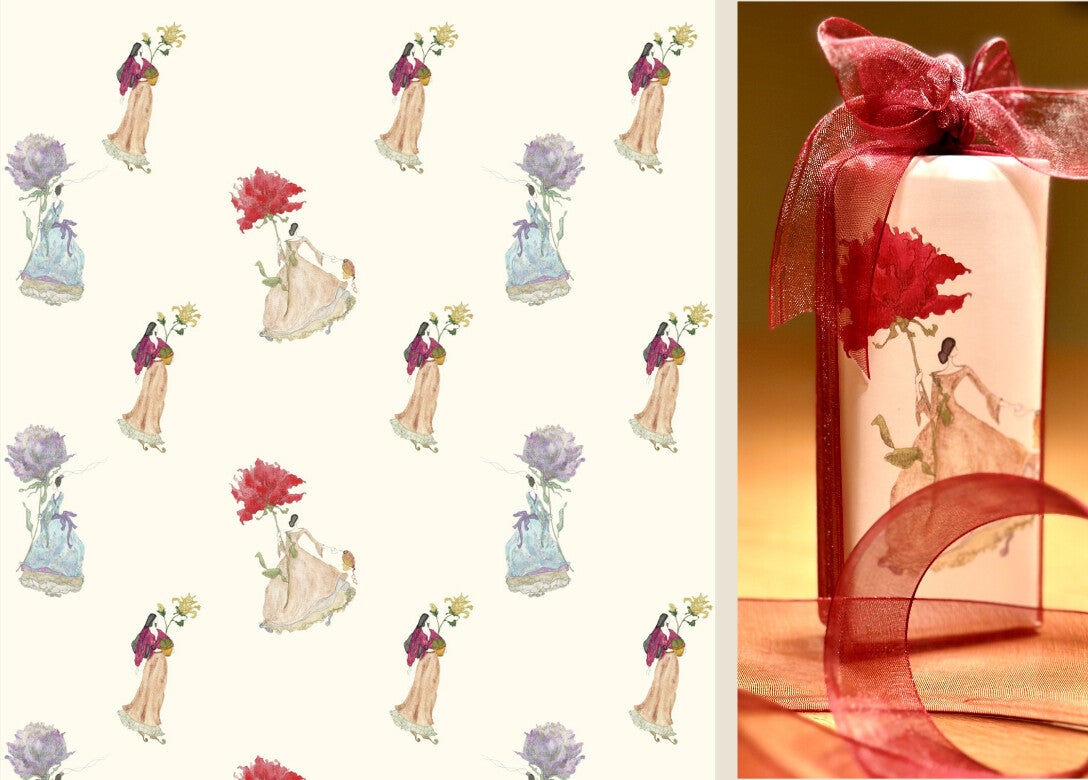 Die Damenmotive, ergänzt durch florale Details und stilvolle Accessoires, werden von Hand aquarelliert,