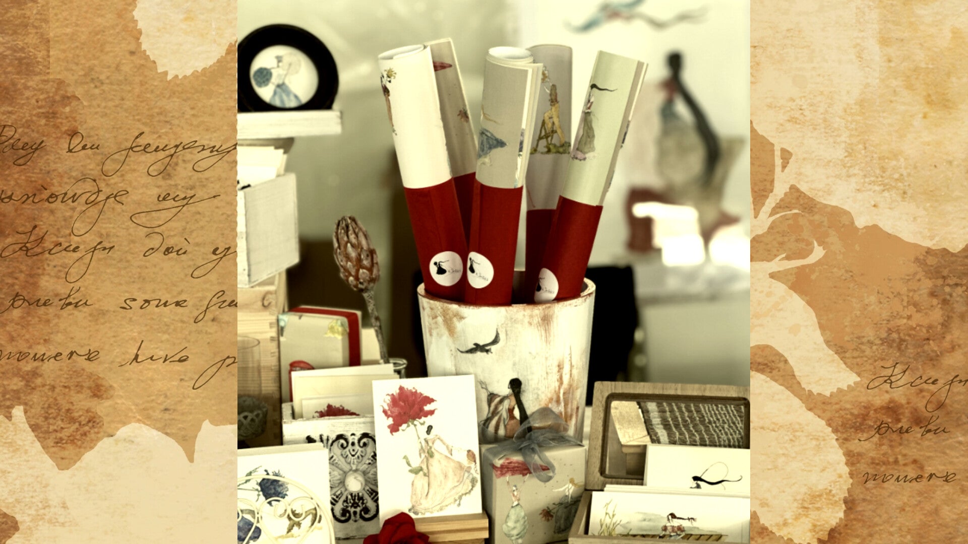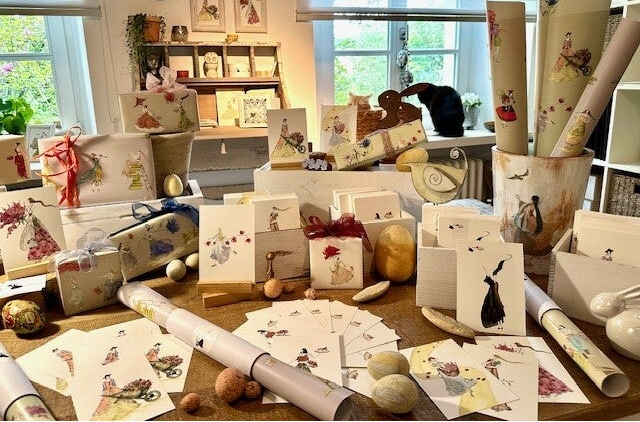 einzigartigen Grußkarten, schönem Geschenkpapier und Wandbildern,