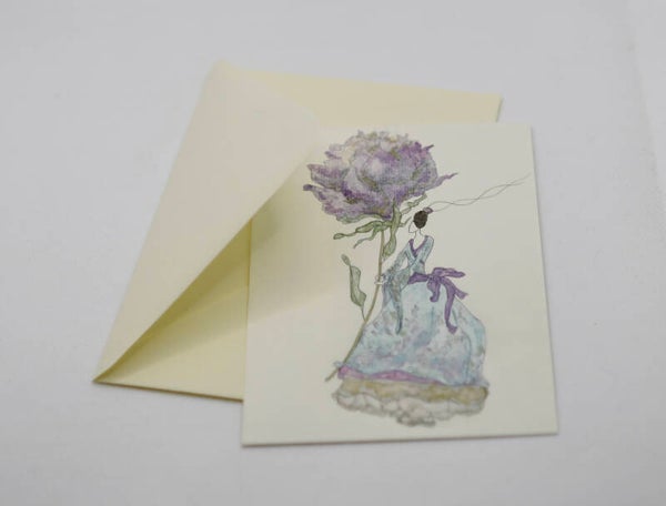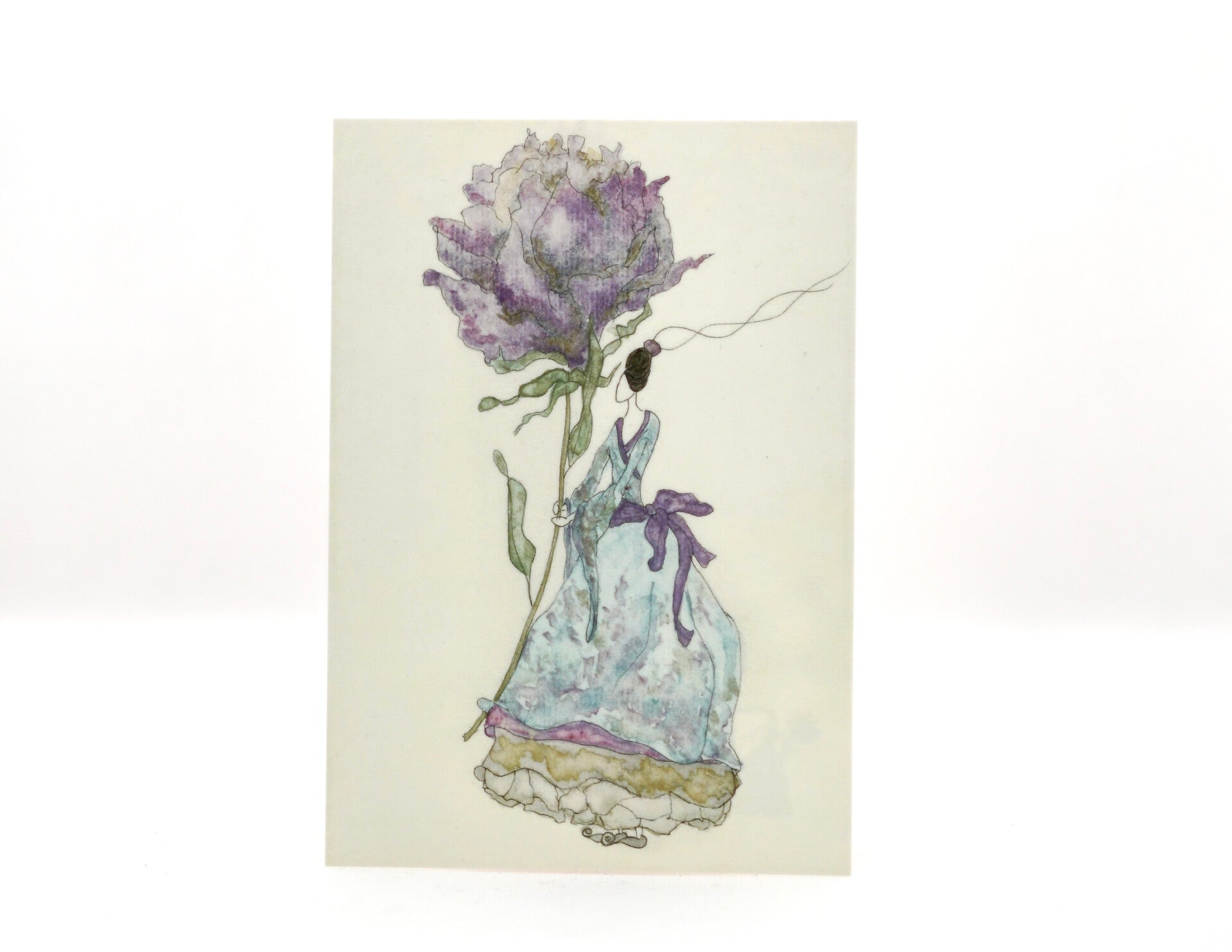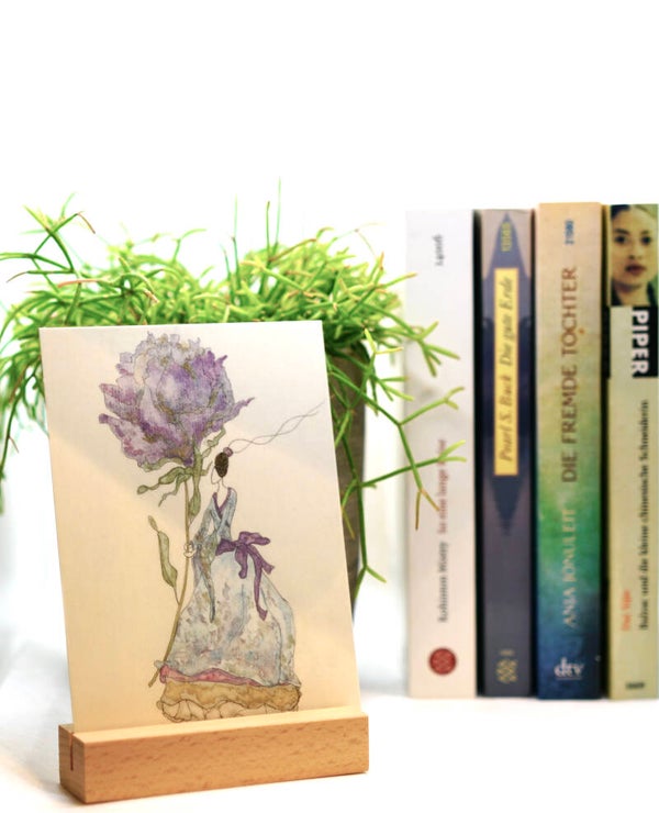 Drei verschiedene Kunstkarten mit Blumenmotiven.