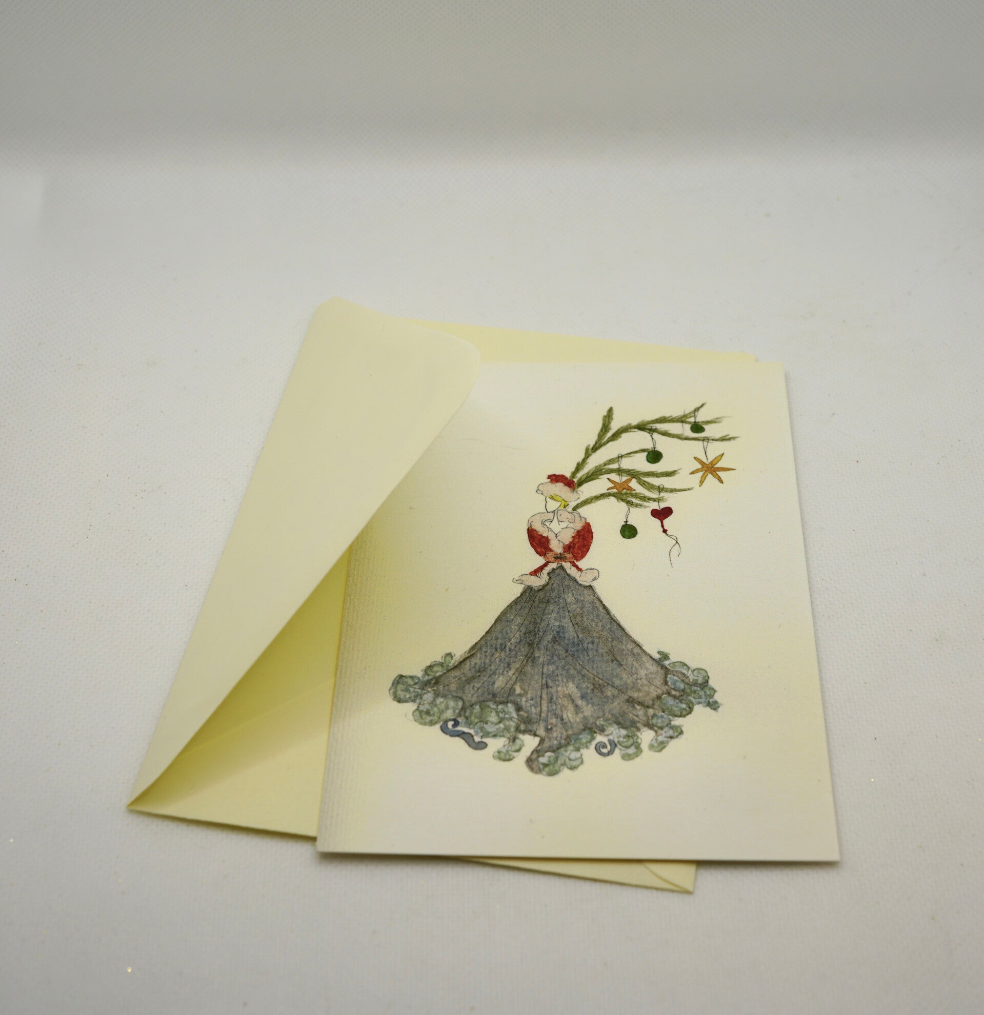 Elegante Darstellung einer jungen Dame mit Tannenzweigen – ein festlicher Gruß, der verzaubert.